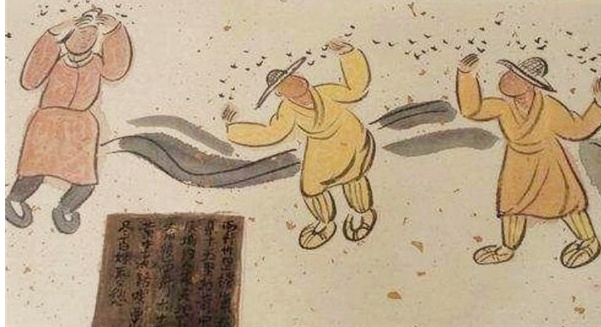 他,沿路看见农民忙着用蒿蔓杂草,将死掉的蝗虫包裹起来,挖地深埋,累累相望,100多公里。捕杀的总数,报官的就几有三万斛之多,飞蝗来势之大,不难想见。