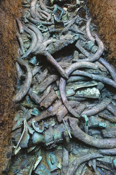 三星堆遗址三号祭祀坑的象牙。 新华社记者 沈伯韩 摄