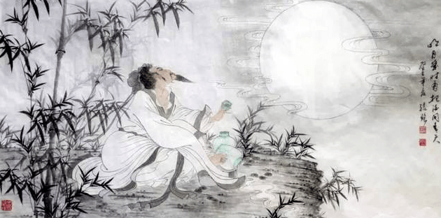 一壶清酒,伴着泪千行,面容在月光下憔悴、落寞。