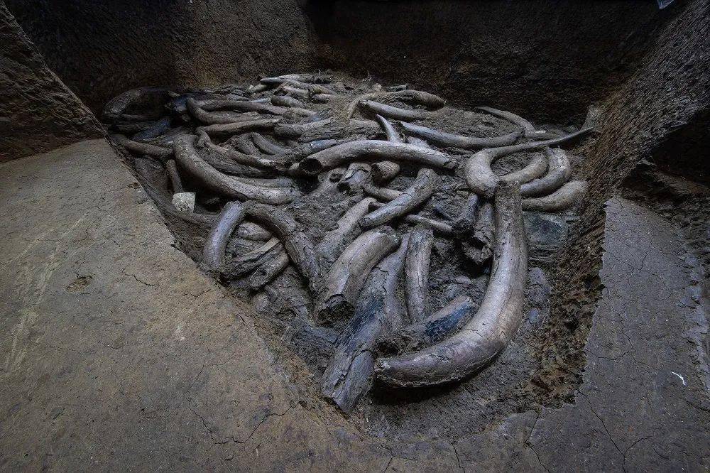 八号坑已经清理完填土堆积、灰烬堆积,暴露出象牙和象牙之下的埋藏文物,象牙数量预计将近200根,能确认的文物包括铜人头像、铜面具、铜尊、铜方罍、铜神坛、铜神兽、铜顶尊人像、玉璋、玉戈、玉有领璧、石磬等,目前正在开展象牙提取工作,预计将于10月份提取完全部象牙并开始提取埋藏文物。目前提取的近似完整器包括铜器54件、金器349件、玉器199件、石器34件,提取象牙66根(含残断象牙),典型文物包括小型铜凸目鸟身人像、金面具、玉璋、石磬等。
