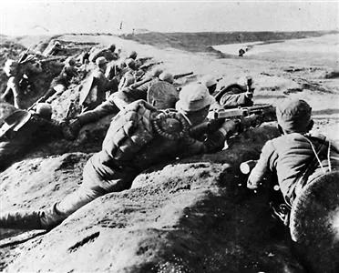 1937年9月,八路军115师战士在平型关公路两侧伏击日军