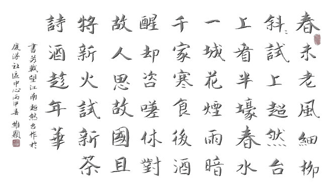 “三分春色一分愁”。词中浑然一体的斜柳、楼台、春水、城花、烟雨等暮春景象,烧新火、试新茶的细节,细腻、生动地表现了细微而复杂的内心活动,表达了游子炽烈的思乡之情。
