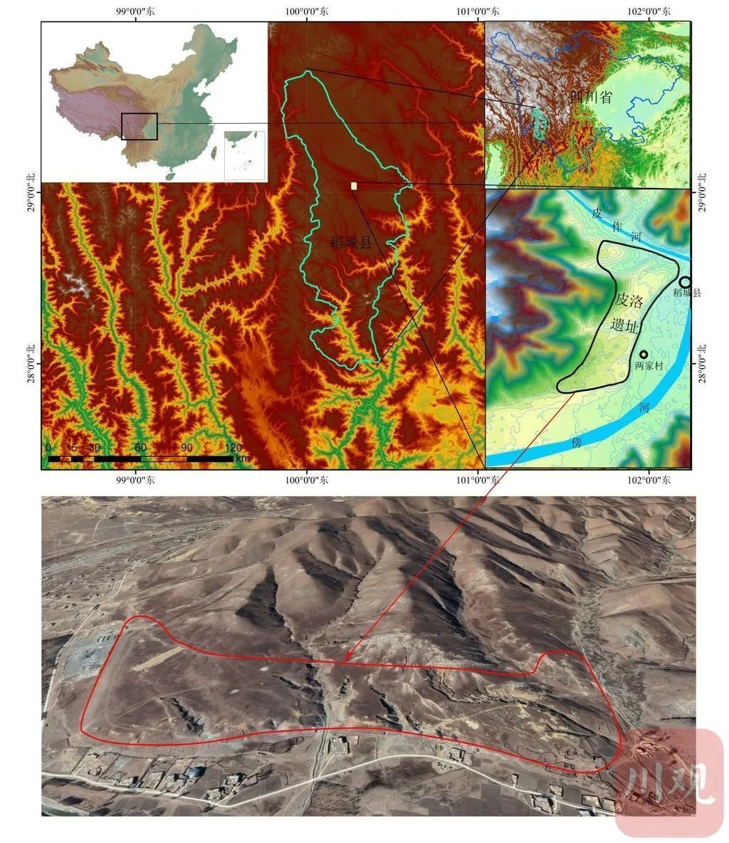 皮洛遗址位于稻城县金珠镇七家-平洛村,距稻城县城约两公里,平均海拔超过3750米,为金沙江二级支流傍河的三级阶地。这里海拔高、气候冷,起伏的山体上岩石裸露,仅生长着低矮的小草。然而在旧石器考古人员眼里,这里却是发育充分的阶地,黄土堆积可能已有几万年甚至几十万年的历史。