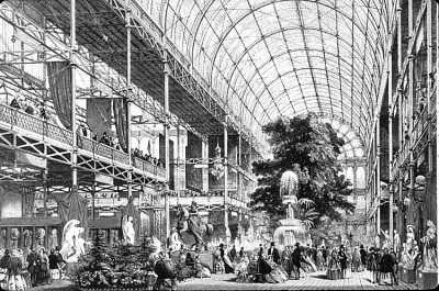 举办国际展览会是一件复杂的事情。皇家委员会及其专门委员会和地方委员会有条不紊地展开了各项工作,他们将展览馆地址选定在海德公园南侧,并用英、法、德语向各国发布展馆设计招标书,最后英国园艺师约瑟夫·帕克斯顿设计的水晶宫脱颖而出。工人们以惊人的速度用玻璃和钢等预制结构搭建起了水晶宫,它长563米,宽124.4米,高20.13米,建筑面积7.2万平方米,通体透明,庞大雄伟,并将公园里几棵成熟的大榆树有机地容纳其中。