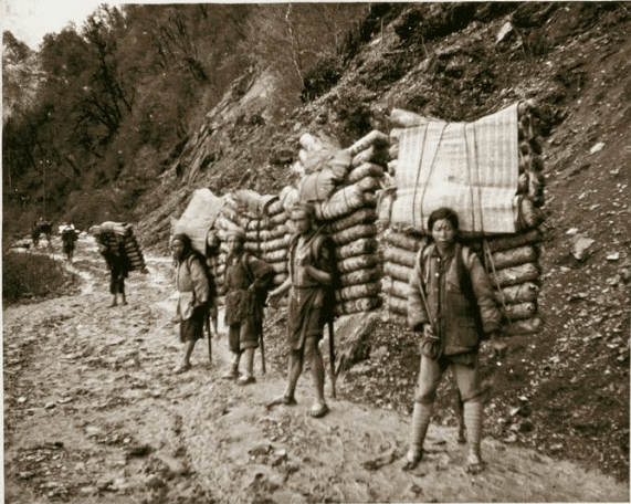 从东汉至名山解放前的近2000年间,名山边茶均是用脚夫、驮马接力运送。平凡的背夫们,过险山、涉湍江,用马帮的马蹄和背夫的脚步走出一条著名的茶马古道。这条千年茶马古道,逶迤于世界屋脊之上,将川、藏地区紧密相连,成为川藏两地政治、军事、经济、文化的连接线、保障线、生命线。这条千年茶马古道,因其迷人的文化底蕴、独特的自然景观备受世人关注,是背夫们用生命铺就的中华民族的脊梁。
