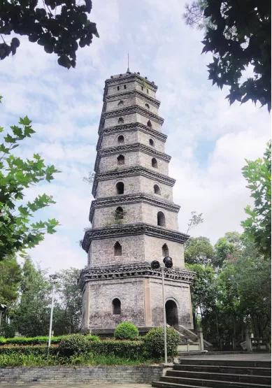 在三台县东山山顶,高24米的东塔格外醒目。如今,这座有400多年历史的建筑已被列入省级文物保护单位。