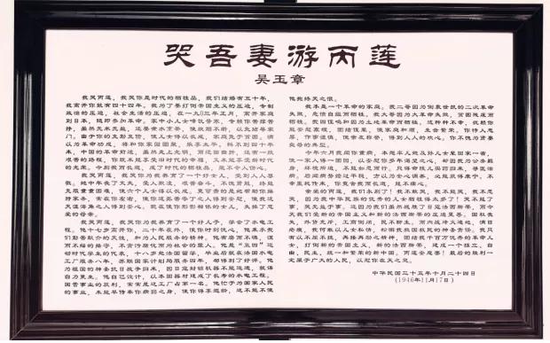 1946年6月,吴玉章70高龄的结发妻子游丙莲突发重病,急需丈夫回荣县老家照护。然而,此时的国家内战阴云密布,身处重庆的吴玉章正在全面领导云、贵、川等西南地区党的工作及新华日报社工作,根本没有分身的可能。无奈之下,吴玉章只好急命儿子吴震寰回乡侍奉病入膏肓的母亲,并祈祷妻子“必能获得康宁”。不想4个月后,百忙之中的吴玉章却等来了妻子去世的噩耗。悲痛之余,吴玉章怀着对亡妻的愧疚、感激与难舍之情,于民国35年(1946年)10月24日写下著名的哭妻祭文——《哭吾妻游丙莲》。祭文不长,仅1000余字,但读来感人肺腑、令人泪目,朴实无华的文字背后浸透着吴玉章对失去爱妻的极度伤悲和对家国的浓浓情怀。