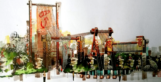 原始植物编织促进精细纺织的创新发展,有了人类文明诞生和最时尚之作重要标志“布”的出现。古老的“织布机”元素用当代语言表达,融合编织和纺织形成人类走向创新发展和时尚追求的故事主线,最终形成中国及世界具有代表性的创新和时尚产业会址地的格局,对成都及川渝社会、经济和传统文化有效传承及助力乡村振兴,都将起到重要作用。