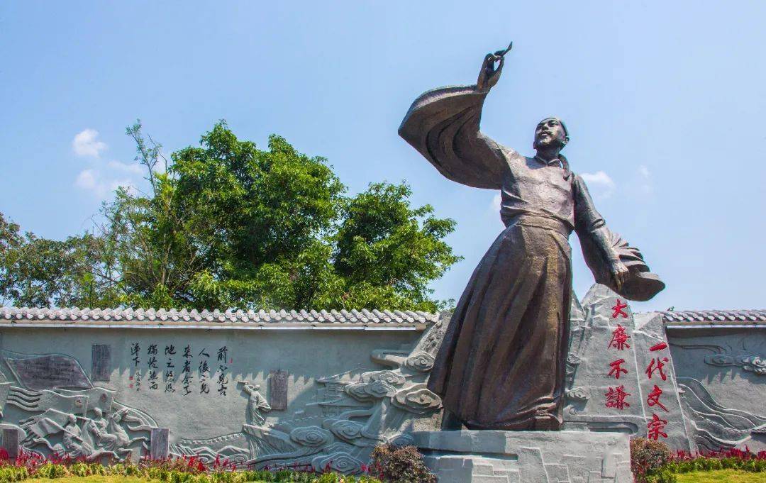 众所周知,陈子昂诗文上接骚雅,下承建安,主张风雅兴寄,关注国计民生,壮开一代唐风,揭露现实而风骨毕显。而他本人为官作宦,亦是谏诤直行,刚正不阿,大廉不谦,风骨峥嵘。诗廉文化艺术墙前矗立着一尊6米多高的陈子昂铜像,只见他目光刚毅,神采飞扬,睥睨天下,傲视苍穹,踌躇满志,衣袂翩翩,挥舞着手中的神来之笔,为天地立心,为生民立命,凌云书劲节,健笔写春秋,勾勒出大唐诗歌盛世,描画出一生壮丽华彩!