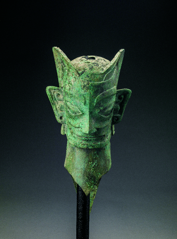 1986年三星堆遗址1号祭祀坑出土的青铜人头像(三星堆博物馆供图)