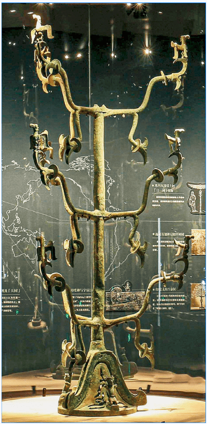 1986年三星堆遗址2号祭祀坑出土的2号青铜神树(图片来源:三星堆博物馆官网)