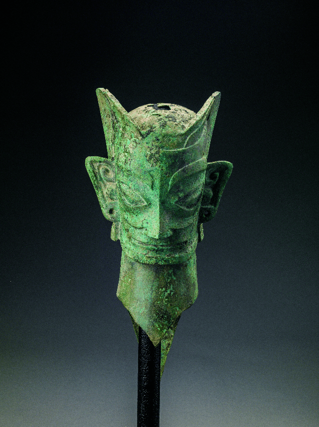 1986年三星堆遗址1号祭祀坑出土的青铜人头像(三星堆博物馆 供图)