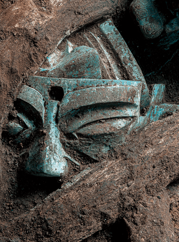 三星堆遗址3号坑出土的青铜面具(四川省文物考古研究院三星堆研究院供图余嘉摄)