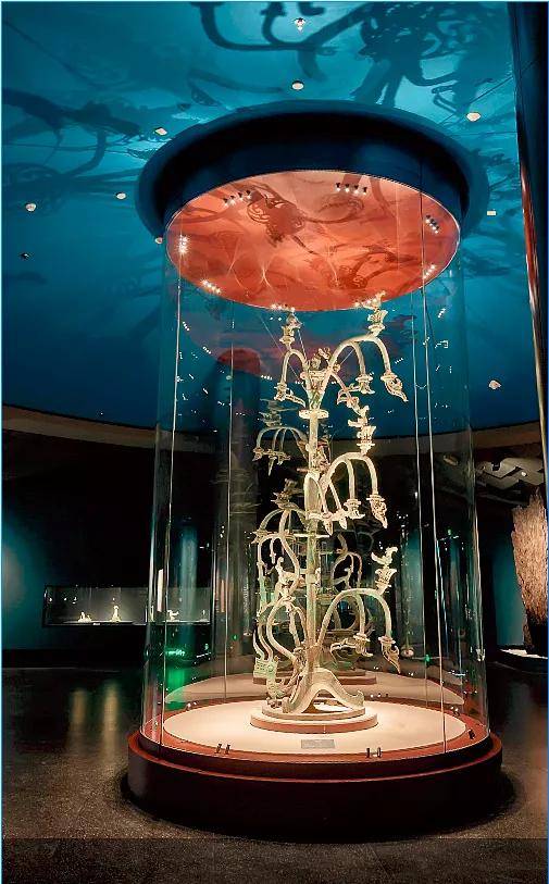 三星堆一共出土8棵青铜神树,三星堆博物馆展出的有3棵。在馆里看见这棵3.96米高的青铜神树时,觉得无论是远古神话,还是树名稀奇,都不及看见这棵树时心灵的震撼;因为它是迄今为止世界上发现的最大青铜祭器,拔地通天,是古蜀人幻想成仙的登天之梯。