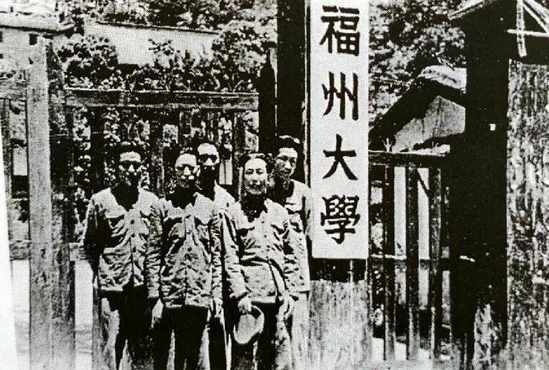 十兵团后勤部机关附近是福建省最高学府“协和大学”,新中国成立后更名为福州大学。1950年,蔡长风(前排左一)与后勤部干部在福大门口合影
