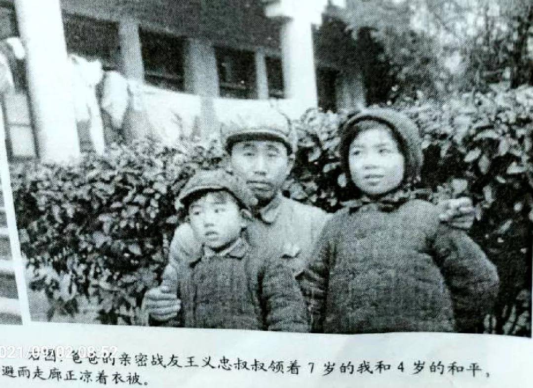 当时没有托儿所,5岁的和平有时也跟着8岁的我瞎“上学”。一天,放学路上,突然我们看见一个“白大褂”举着一个长长的大针管“笑嘻嘻”地冲我们来了,吓得我们连喊带叫撒腿就跑,幸亏离家不远,院外站岗哨兵哗啦一下子弹上膛刺刀上枪,冲“白大褂”厉声大喝“干什么!”我俩赶紧跑过去,一左一右躲在哨兵身后,双手紧紧抓住哨兵的衣服,“白大褂”这才转身悻悻离去。从此,吓得和平再也不敢“上学”了。此事对和平造成的惊吓,至今记忆犹新。第二天,我继续在西湖小学上学,由爸爸的警卫员持枪接送。由于局势混乱,上了一天,学校就停课了。