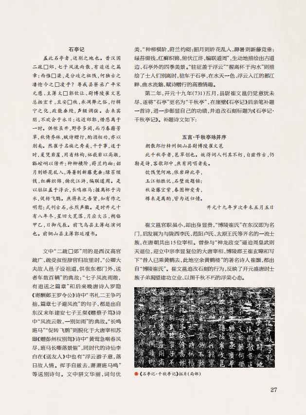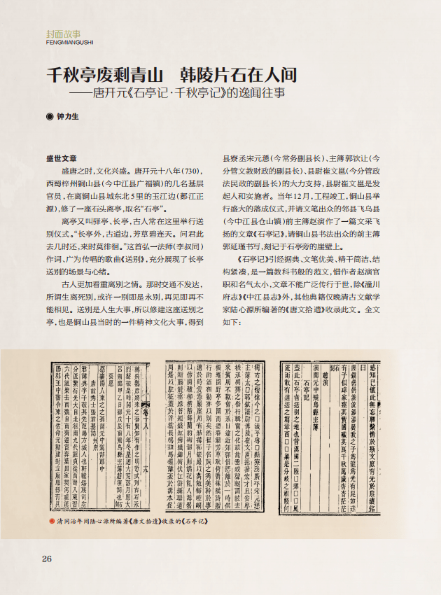 ——唐开元《石亭记·千秋亭记》的逸闻往事