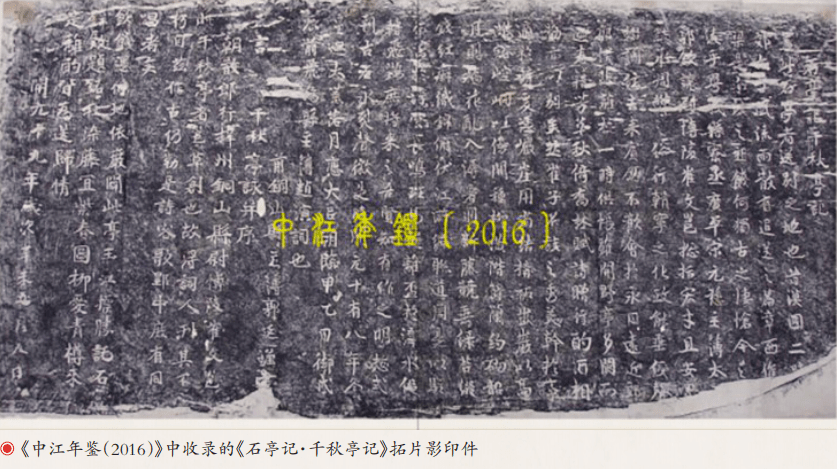 20世纪70年代前,成都青羊宫附近的古玩市场间或有人在售卖一种碑帖拓片,有的裁切成册,有的裱成横幅,因其字体舒张遒逸、颇有古意,为书法爱好者追捧喜爱;因帖中题名“石亭记·千秋亭记”,人们简称为《千秋亭记》或《千秋亭帖》。