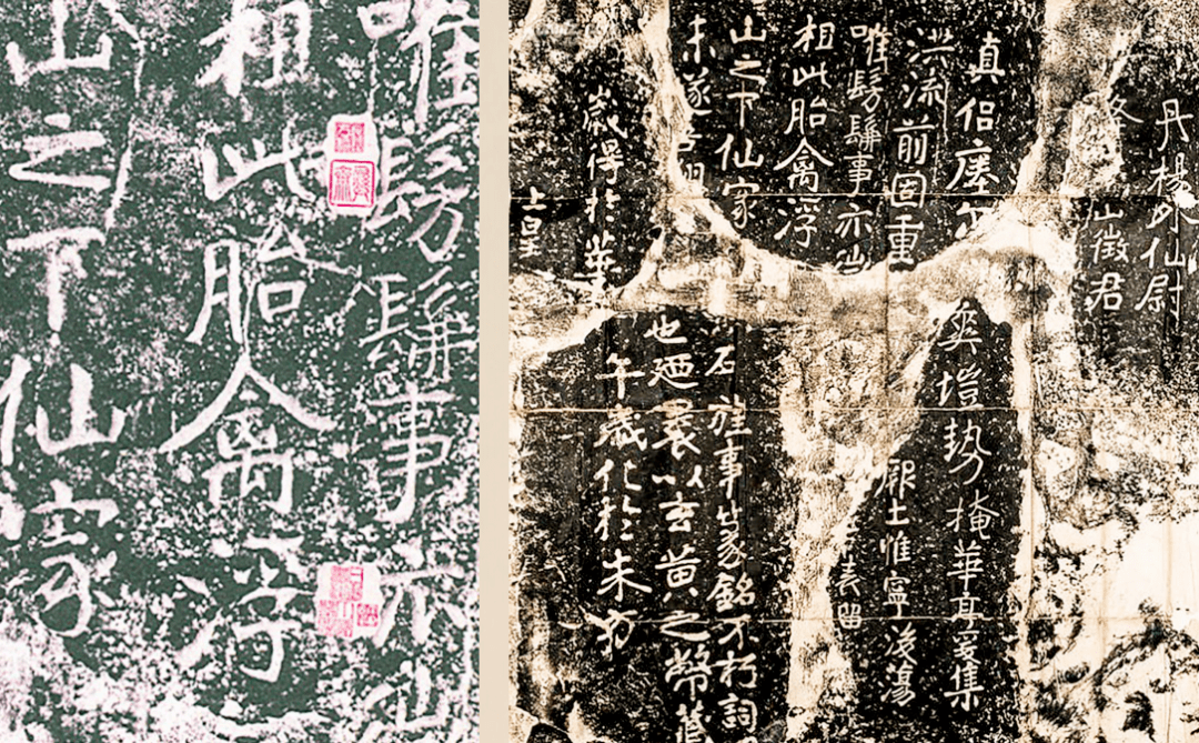 其实早在清道光年间,《千秋亭记》摩崖书法拓片就已逐渐在世间风行传播。当时,四川按察使(今分管政法监察的省级领导)刘喜海,对金石古泉、碑刻书法极有兴趣和研究,得到《千秋亭记》摩崖书法拓片后,十分喜欢和重视,时时品读把玩,并在拓片上钤自己的私印“刘燕庭西蜀得碑记”“丙午”2枚,这是现今已知留存于世时间较早、存字较多、拓印清晰的版本。