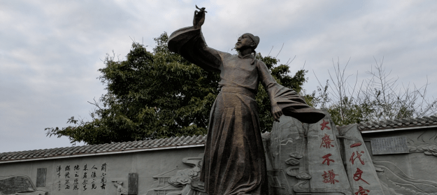 陈子昂冤死60年后,公元762年秋天,一位避难四川的伟大诗人,追慕文宗的风骨与情怀,踏进了射洪的土地,游览了金华山,想必也在后山门留下过足迹。他凭吊陈子昂读书台遗址,写下了《冬到金华山观因得故拾遗陈公学堂遗迹》一诗,其中有“悲风为我起,激烈伤雄才”之句,这位称陈公为“雄才”的伟大诗人就是杜甫。后人记录杜甫的金华山之行,在陈子昂读书台拟了门联:“亭台不落匡山后,杖策曾经工部来。”杜甫的伟大,不仅仅在于他把唐诗推向了顶峰,成为中华“诗圣”,还在于他那爱民恤民的情怀。杜甫的晚年,由于安史之乱,到处漂泊,生活极端困苦,但生活上不论怎样苦,也不论漂泊到什么地方,他总是在关怀着国家的安危和人民的疾苦。杜甫有“穷年忧黎元”的思想,有“济时肯杀身”的精神,与陈子昂的“忧济在元元”,可谓一脉相承。