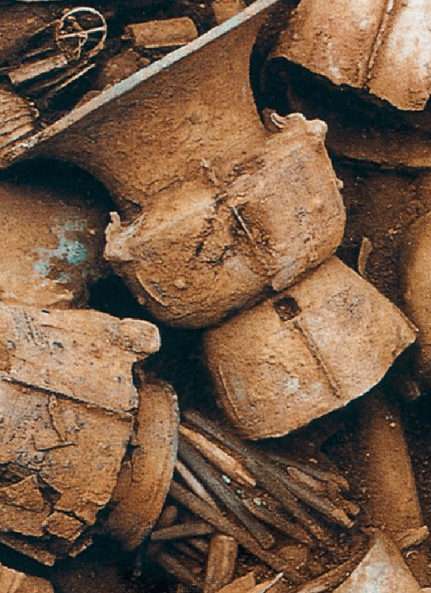 三星堆遗址2号祭祀坑局部(三星堆博物馆 供图)
