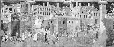 锡耶纳画派的代表人物安布罗乔·洛伦泽蒂为锡耶纳市政厅绘制的《好政府在城市之影响》。 资料图片