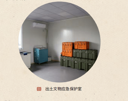 有机质文物应急保护室配备充氮保湿箱、低温保湿柜、生物低温采样箱等设备,可对出土角骨蚌牙、纺织品、漆木器开展应急保护;无机质文物应急保护室,配有离子色谱、整体提取设备,可对出土金器、青铜器、玉石器和陶器进行应急保护;应急检测分析室,配备手持式X—荧光仪、超景深显微镜、体式显微镜、色差仪等便携检测仪器和丝蛋白检测材料,可对出土文物、微痕信息进行快速分析和微观形貌观察,为文物应急处理与后期保护研究提供信息支撑。