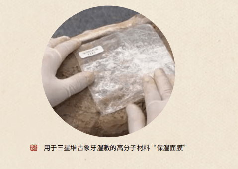 有机高分子材料可用于文物表面封护、文物加固、粘接等方面。在三星堆遗址新发现6座祭祀坑发掘中,考古工作者对露出发掘层的象牙首先进行保湿处理,应用仿生技术研发保湿新材料,直接贴附于象牙表面,实现象牙与周围环境的初步隔离,避免其内部因水分流失迅速开裂,同时也隔离外部空气。再利用有机高分子材料对象牙结构进行加固,随后取出象牙,立即送往文物保护修复中心。