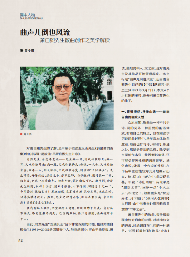 【文史英华】曲声儿倒也风流——萧自熙先生散曲创作之美学解读‖曾令琪