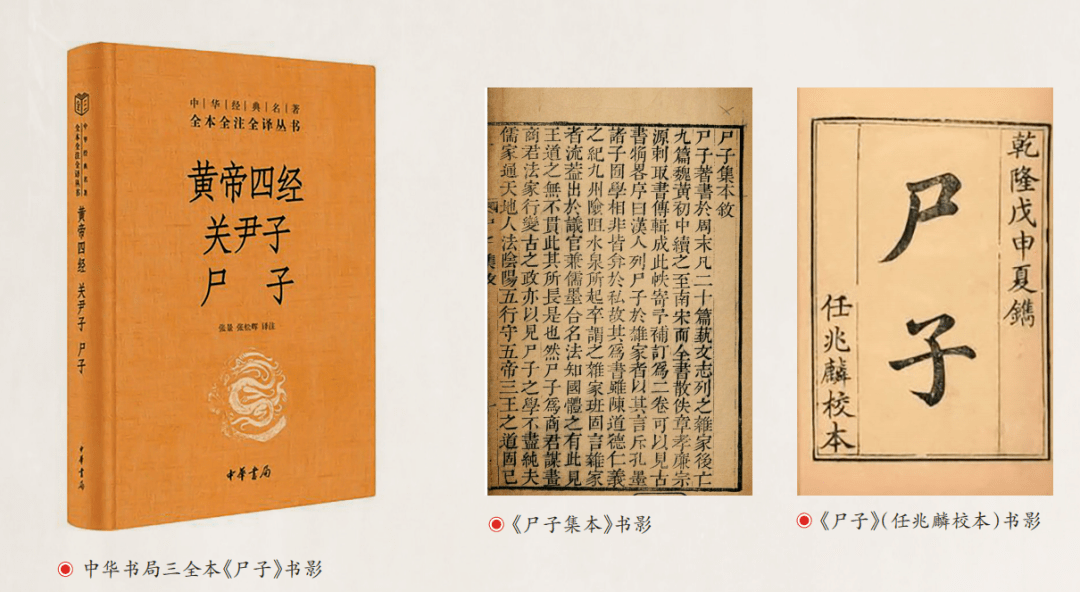 清嘉庆十六年(1811),汪继培据惠栋、任兆麟、孙星衍3人辑佚,重加厘订与考辨,撰成《尸子校正》2卷。其书以唐代《群书治要》所载《尸子》部分为“上卷”,以散见于各书文字为“下卷”,另集各辑本所违错及误收文字为《存疑》,附于书后。汪继培辑本体例谨严、选取严格,吕思勉《经子解题》称该辑本为“实最善之本也”,良有以也。