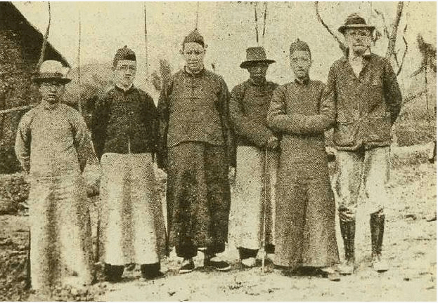 葛维汉(右一)与华西协合大学发掘人员、广汉县政府官员在发掘现场(图片来源:岳南《天赐王国——三星堆与金沙遗址惊世记》)