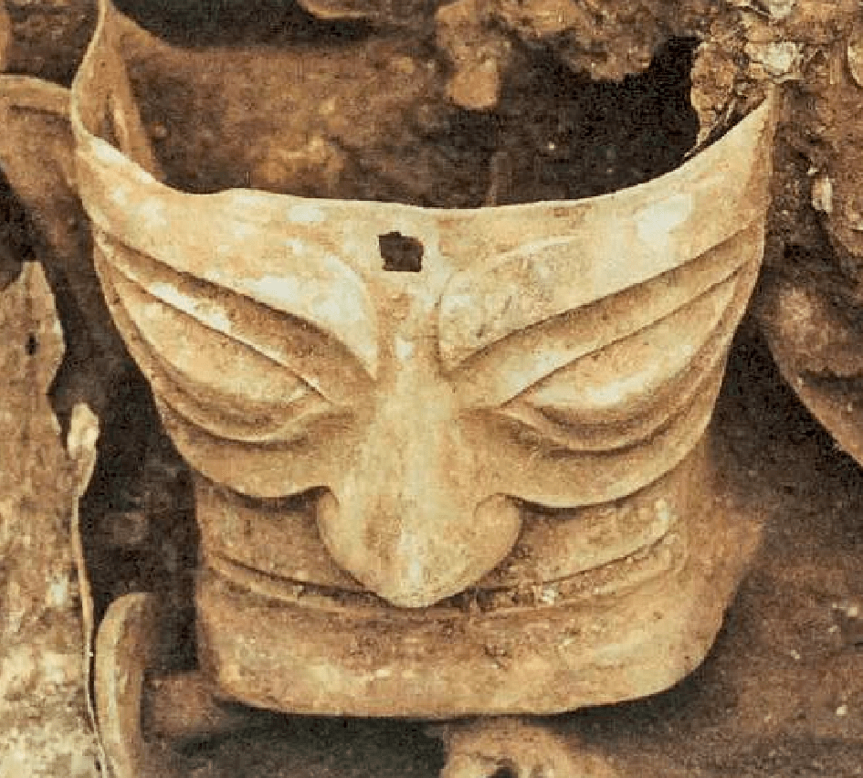三星堆遗址2 号祭祀坑中纵目人青铜像破土而出(四川省文物考古研究院三星堆研究院 供图)