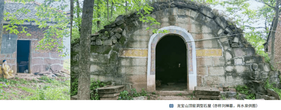 遗迹二:龙宝山顶窑洞型石屋。当地传说是刘禅墓或太子洞,但这两种说法都经不起推敲。因为按风水学观点和周围地形地貌来看,假如是“刘禅墓”或“太子洞”,其门都应朝淮州新城方向(恰好是坐北朝南)开,才符合古时风水观点。而这座拱形石建筑,却是坐东朝西,与古人的风水理论严重不符。除风水说不通外,还有一点,在南方地区,很少有人把建筑修成“窑洞”形状(面积大概有10余平方米,顶部覆盖一层土,周边森林植被茂盛,确实是冬暖夏凉的好地方),且还修在山顶上。