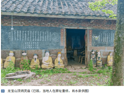 宋代《太平广记》引录唐代《集异记•李纳》,称炳灵公为泰山三郎。后唐至宋代,泰山三郎逐渐被加封为炳灵公。据说,洪雅县炳灵场镇的炳灵祠(建于明代正德年间)供奉的神,就与古蜀神话里的鳖灵有关。按照洪雅县的供奉思路,有学者考察认为,龙宝山供奉的“炳灵”,极有可能就是“鳖灵”。