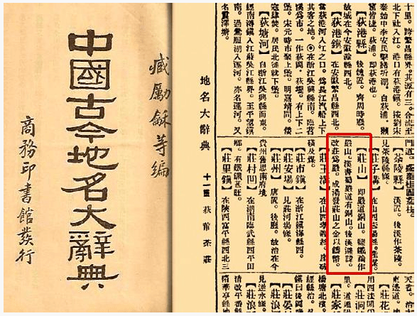 《中国古今地名大辞典》中有关“庄山”的记载(夏云 供图)