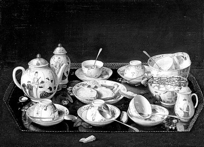 这幅画所呈现的只是一个被有限的物理空间限定的局部,它的宏观的社会背景是饮茶方式的日常化和仪式化。茶已如此广泛流传、深入人心,观者可以轻而易举地在图像学意义上解读它,将这个静态的画面激活。它表达了一种寄托,再现了一种典型的富足、闲适的生活方式。从荷加斯的风俗画到利奥塔的静物写生,茶占据了中心的位置,作为一种固定的构图方式维持着相对稳定的内涵。一方面,它们确凿无疑地指向了茶的流行;另一方面,它们也指向了一个事实:茶在经历了欧洲之行后,已经改头换面:它的饮用方式需要糖和奶的搭配,在新的饮食结构中发挥了与其原初语境不同的作用。