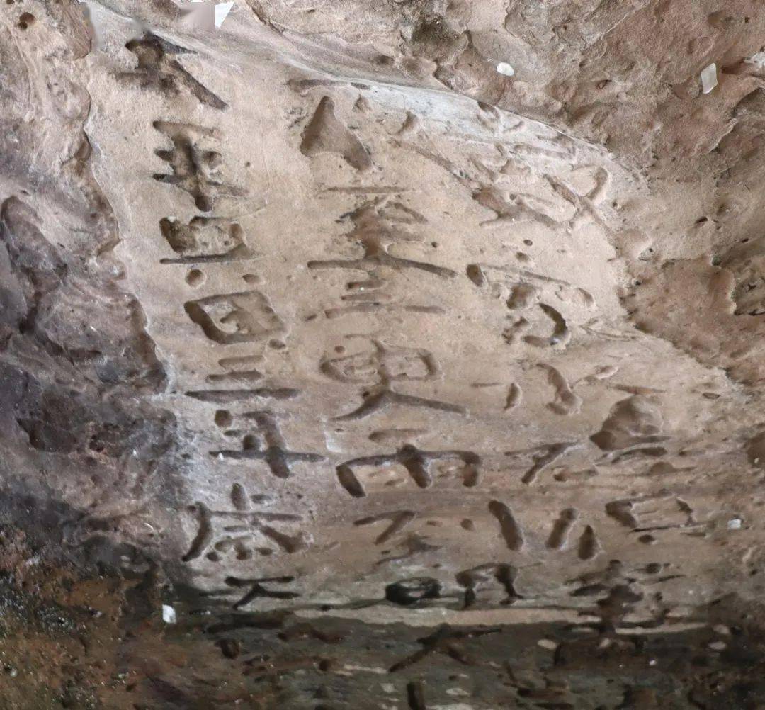 “对比着看,才发现‘铜山县’好大!”从中江县城赶来的一位网友感叹道。的确,与周边几块石刻碑文以小楷字体为主不同,“铜山县”是篆书大字,每个字高约两尺。因为长期在水中浸泡,石壁的颜色有些乌黑,但一笔一划仍清晰可见,圆润厚实的篆书特点展露无遗。大字左右两边分别有几行小字,个别已无法辨识。