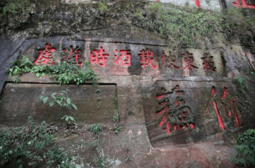 凌云山题刻“苏东坡载酒时游处”“仰苏”(周德平 摄)