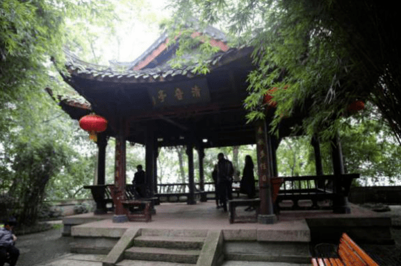 一是清音亭,在大佛头部左侧临崖处,下瞰大江,远眺三峨,景象万千。据南宋邵博《清音亭记》载,苏轼曾手书亭额,后被一官员改为“横山堂”,足见当时党争之厉害,也可见苏轼被后人广泛认同是经历了一个比较、积淀过程的。今清音亭题额是丙寅年(1986)重刻的东坡手书。