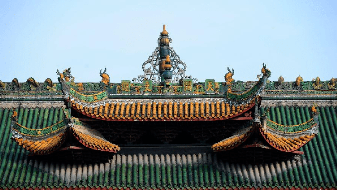 九、启圣宫:大成殿后,建筑与大成殿同,屋顶为绿色琉璃瓦。
