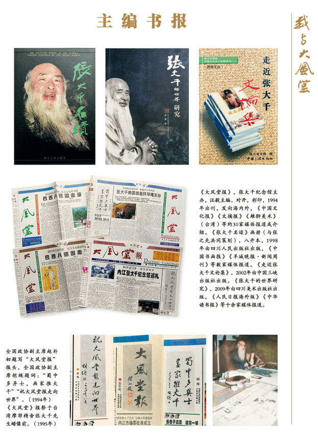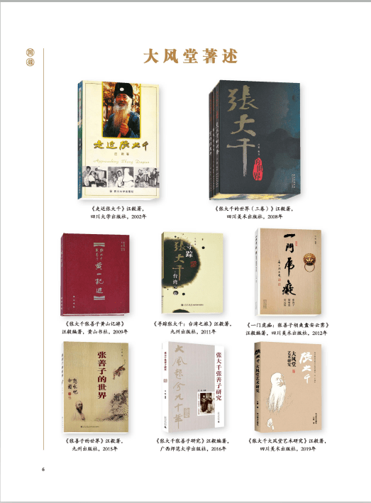 除上述之外,1999年,在纪念张大千先生诞辰100周年时,我与张之先先生主编了《张大千名迹》大型画册;2009年,在纪念张大千先生诞辰110周年时,我著有《张大千的世界(三卷)》,编著有《张大千张善子黄山记游》,编有《张大千的世界研究》,策划了由四川省文联、四川省美协等单位举办的“纪念张大千先生诞辰110周年暨《张大千的世界(三卷)》《张大千的世界研究》首发式暨学术研讨会”。