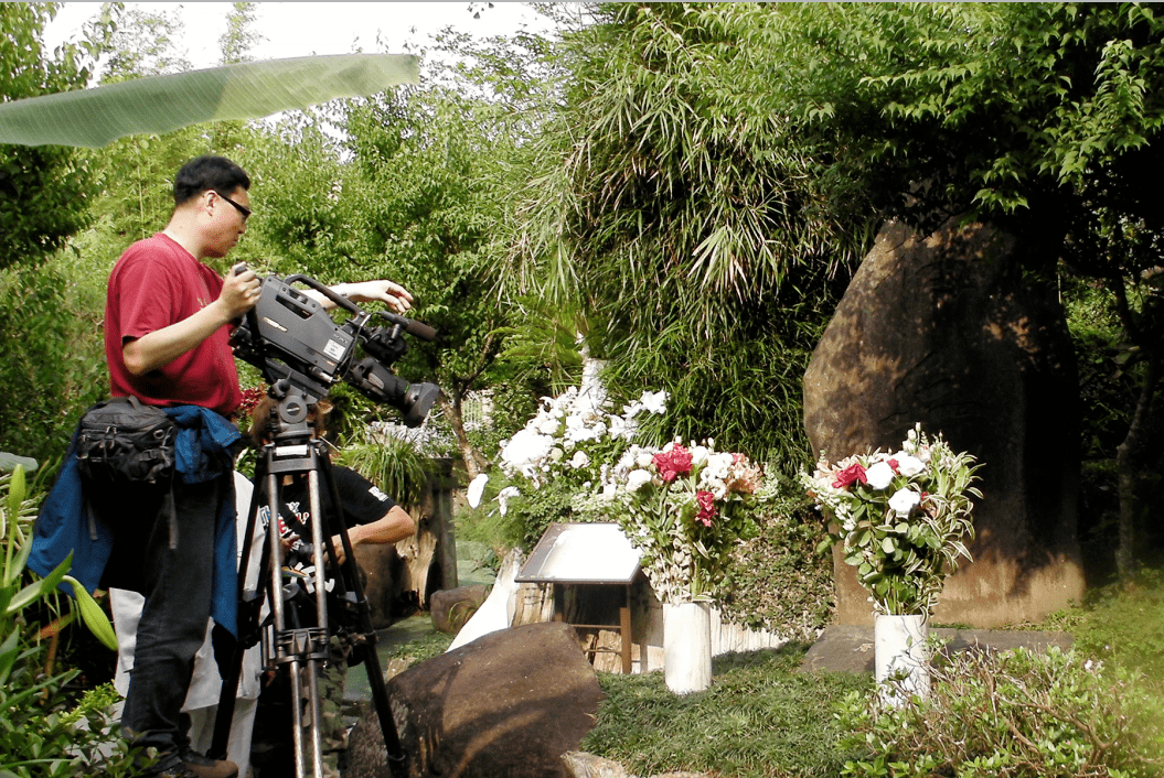 2011年4月,中央电视台《百年巨匠——张大千》在台湾张大千先生纪念馆开机,拍摄张大千灵厝——梅丘