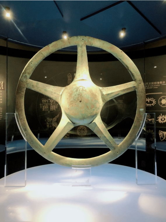 五行,金木水火土,表示古代朴素的系统观,起源于夏朝,大禹治水之后,从人手五指启示而来。《尚书 ·甘誓》记载,大禹之子夏启召集六军将领说,“有扈氏威侮五行,怠弃三正,天用剿绝其命,今予惟恭行天之罚。”这里“五行”是指“金木水火土”,但也有的说是指“仁义礼智信”,但前者的可能性较大。有的还说《甘誓》是伪书,争论较多。在《国语 ·郑语》和《尚书 ·洪范》都有“五材”“五行”记载。总之,三星堆的方向盘不是太阳形盘,而是“月亮五更盘”。