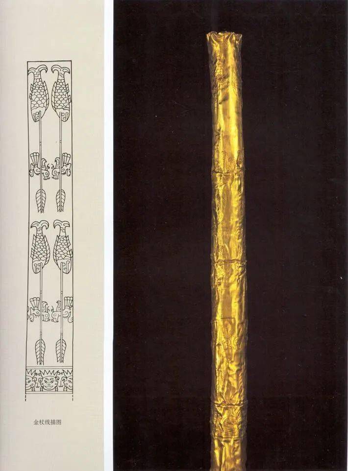 三星堆是古蜀人祭拜月神的中心,曾经还是原始宗教艺术品设计制造中心,也是世界商贸中心,出土的丝织品、海贝等就是证据。金杖是权力象征,只有统治者能用,借鉴了外域文化,更多体现了中华文化。黄金原料(沙金)来自古蜀龙门山特别是阿坝一带,加工技术来自中原地区甚至国外,工序有热锻、锤打、剪切、打磨和雕刻,但技术水平比有铭文的殷墟制品差多了。古蜀与殷商交往很多,仅从卜辞甲骨文就有70多次记载。金杖在祭月时也用于指挥活动,发号施令。金箔上的鱼、鸟、箭符号,表明是“鱼凫”,祭月的物品有鱼鸟,古时这是最好的东西了,早期人类是渔业为生。鸟表示天空,鱼表示江河,箭表示捕获,金杖表示天地联通,上天入地,这是神的本领。