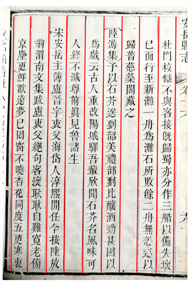 此外,佐证陆游来过安岳的还有他曾为安岳主簿卢晋、字衷父所跋的《卢衷父绝句》:“容怀耿耿自难宽,老傍京尘更鲜欢。远梦已回窗不晓,杏花同度五更寒”(见陆游《渭南文集》及清道光本《安岳县志·外纪》所记载)。清道光本《安岳县志》卷八《官师表》列有卢晋,卷十六《外纪》有卢晋在南宋淳煕年间(1174—1190)于安岳任职主簿的记载,时正值刘仪凤被罢黜回桑梓安岳与陆游在川任职期间。
