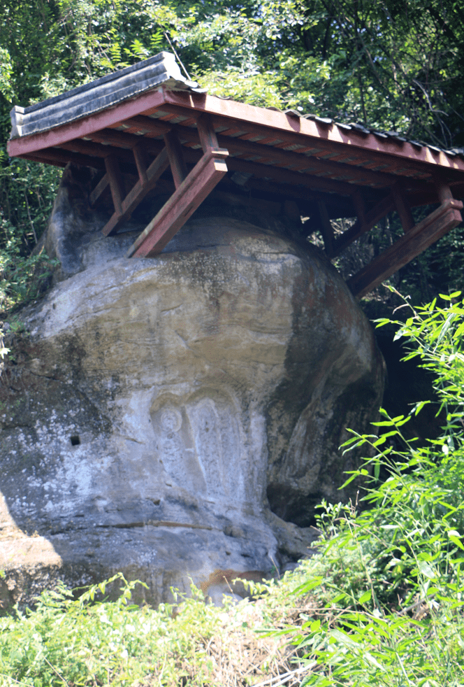 据当地人介绍,陆游诗曾刻于安岳卧佛院此岩壁(南岩造像区88号龛),惜毁于20世纪60年代