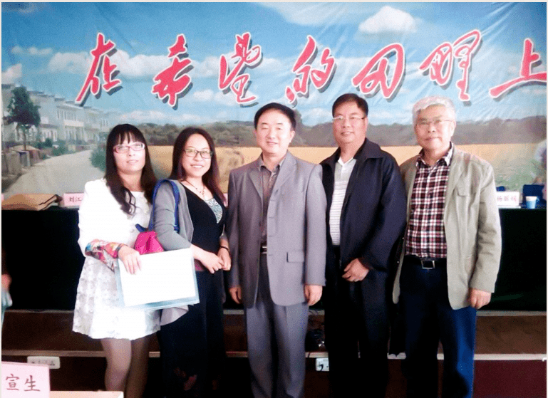 2015年4月,赵义山先生(中)考察山西原平农民散曲社时与部分专家合影(右一张四喜、右二邢晨)