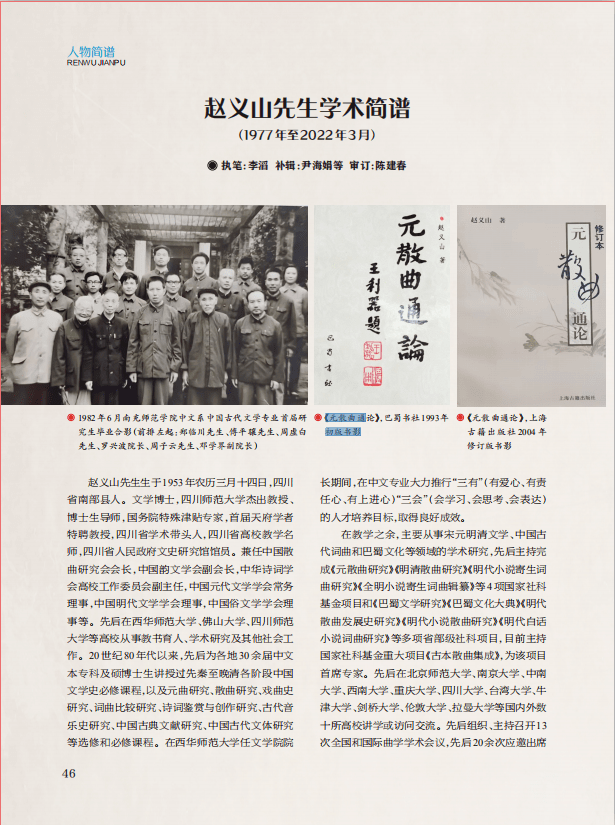 【文史英华】赵义山先生学术简谱(1977年至2022年3月)