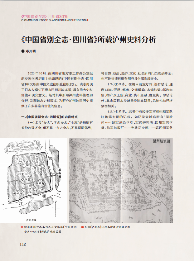 【历史文化】《中国省别全志》所载泸州史料分析‖邓开明