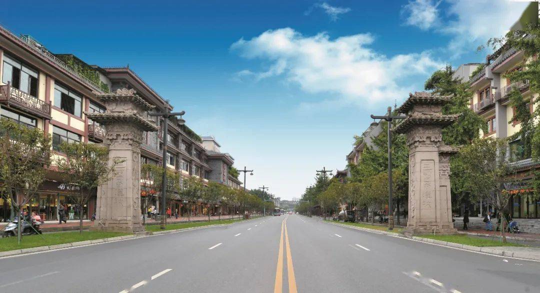 2012年,成都市武侯区对武侯祠大街实施外立面整治,通过对其背景文脉的梳理,将街道按“千秋序曲”“蜀汉礼仪”“万里古道”三个部分进行打造,使其风貌与区域历史文化相辅相成,贯通古今。